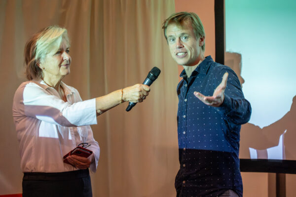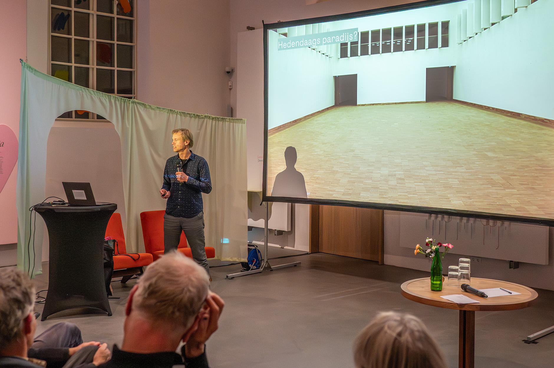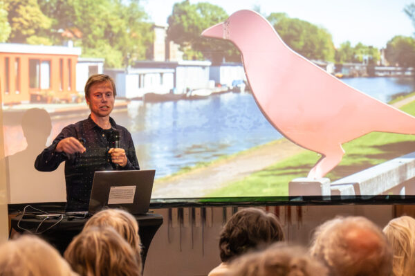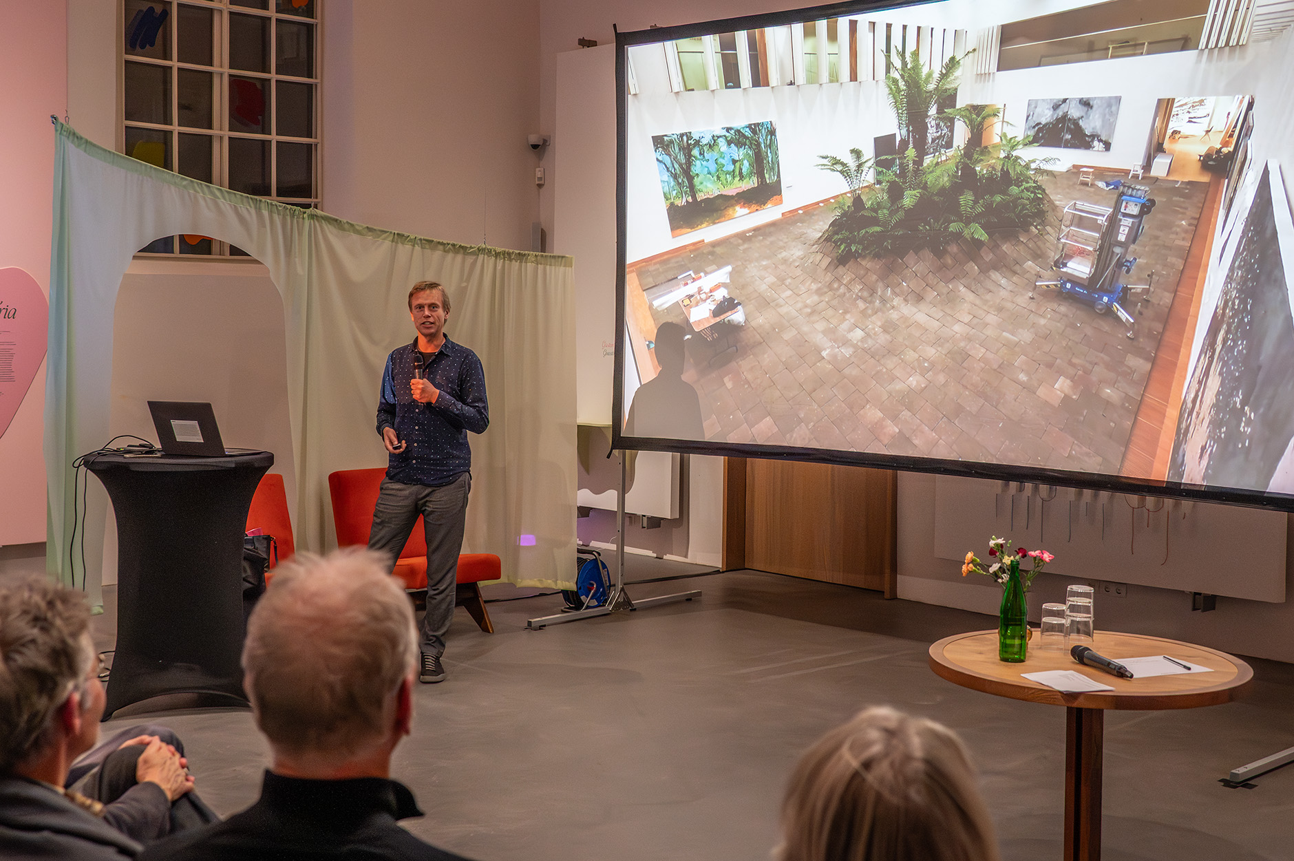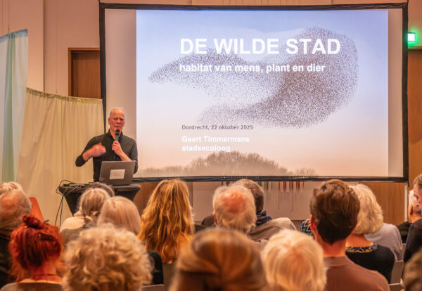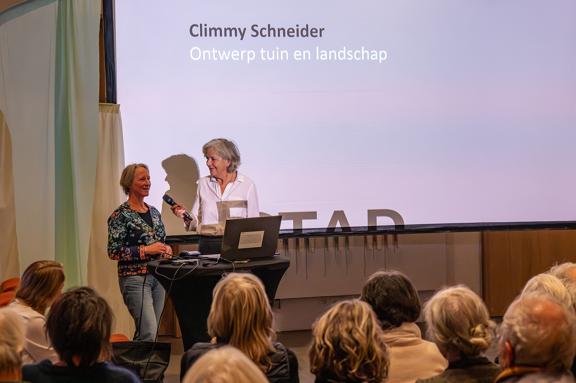 Tijdens deze inspirerende avond lieten de sprekers een breed spectrum aan invalshoeken zien van hoe de natuur aan terrein aan het winnen is. Na een korte introductie van Maartje Roggeveen (Kunstkerk) en Hendrik Jan Groeneweg (Stichting De STAD) kreeg Climmy Schneider het podium. Als landschapskundige heeft ze vele beplantingsplannen gemaakt voor diverse opdrachtgevers. Ze werkt daarbij regelmatig samen met verschillende landschapskundige bureau’s en ook met Piet Oudolf. Haar verhalen zijn vooral voorbeelden hoe natuur vaak belangrijker blijkt te zijn dan vooraf gedacht en mogelijkheden schept voor een prettigere leefomgeving. Zoals de nieuwe tuin van Brainport Industrie Campus Eindhoven waar ze een terras toevoegde waar de Campus niet om had gevraagd. ‘Die nerds gaan toch nooit buiten zitten’ was de boodschap. Na verloop van tijd bleek het terras een erg populaire plek te zijn geworden om te lunchen en met elkaar te genieten van de tuin. Ook tijdelijke (groene) ingrepen en geveltuintjes zijn in haar ogen belangrijk om te koesteren; ze leveren een grote bijdrage voor behoud van insecten en bieden een prettige omgeving.